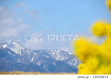冬の北アルプスと高台にある公園 長野県安曇野市