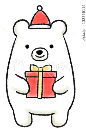 プレゼントを持つしろくまサンタの水彩風イラスト
