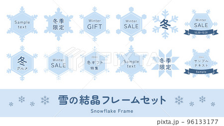 雪の結晶のフレームイラストセット 冬、クリスマス飾り 見出しラベル素材