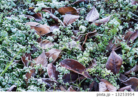 枯葉に降りた霜