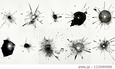弾痕:ガラスに命中した銃弾の跡