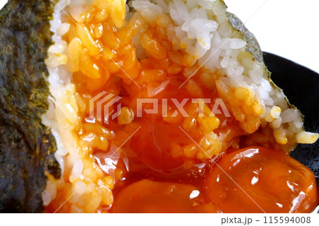 白背景の卵黄おにぎり