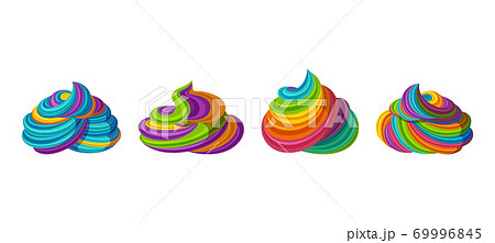 Swirled rainbow frosting for icecream and cupcakes. Tasty cream isolated in white background. Vector illustration