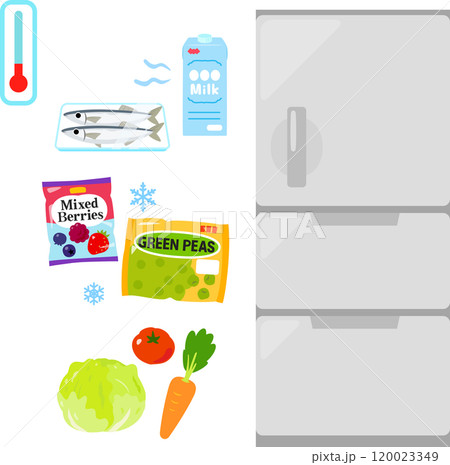 冷蔵庫と冷蔵食品、冷凍食品、野菜