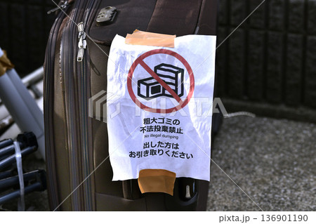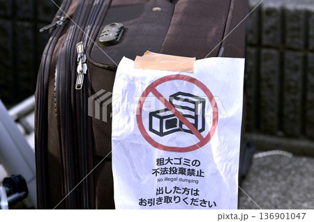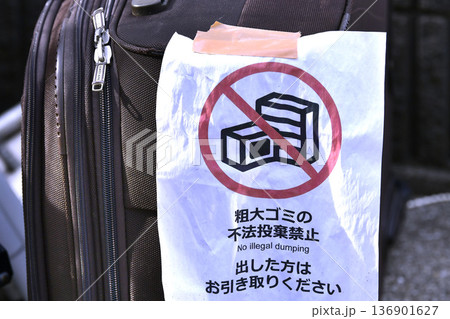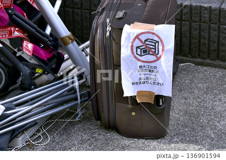 日本の横浜都市景観不法投棄…「粗大ゴミの不法投棄禁止 出した方はお引き取りください」=横浜市内