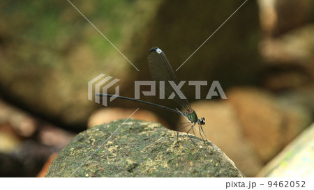 生き物 渓流沿いの木の枝で休むヒナヤマトンボ