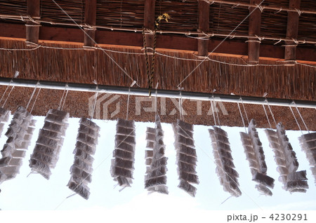 民家の軒に吊るされた凍りもち