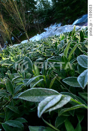凍りついた落ち葉 寒い 冬の朝 イメージ