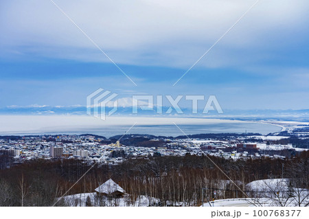 ≪北海道≫ 流氷 氷 海 港 冬景色
