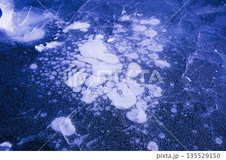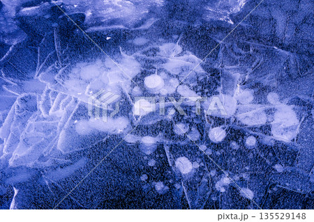 凍った湖に閉じ込められた冬の気泡