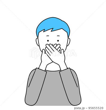 両手で口をふさいでいる男性のイラスト・言わざる(白背景・ベクター・切り抜き)