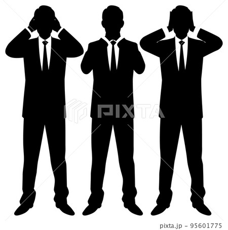 両手で耳をふさいでいる男性のイラスト・聞かざる(白背景・ベクター・切り抜き)