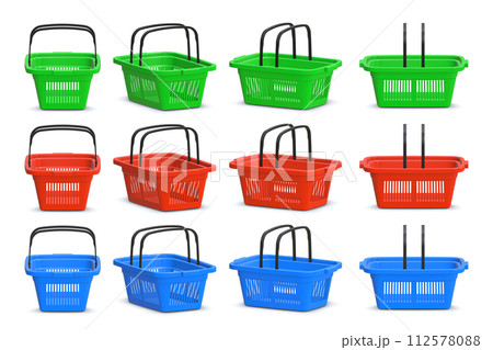 Plastic shopping basket. Isolated supermarket shopping cart.