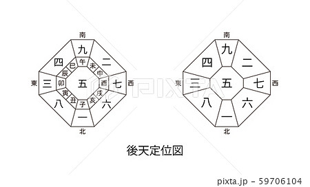 九星気学で用いるシンプルな後天定位図(五黄中宮)