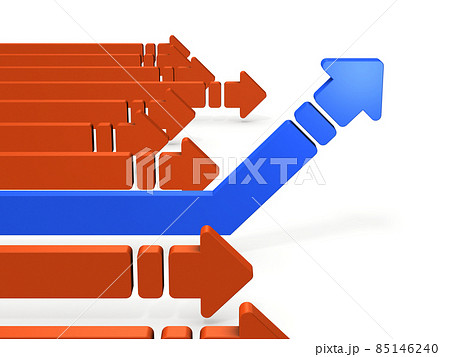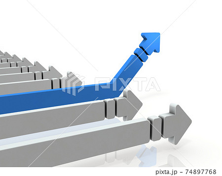 急上昇する矢印。ライバルを出し抜いて、成功すするイメージ。白バック。