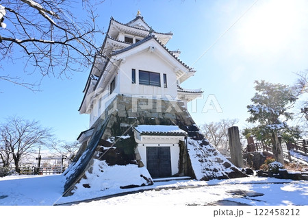 晴天の雪景色と墨俣一夜城(岐阜県大垣市)