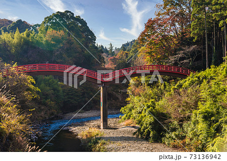 千葉県養老渓谷にある出世観音立国寺へ続く朱色の観音橋