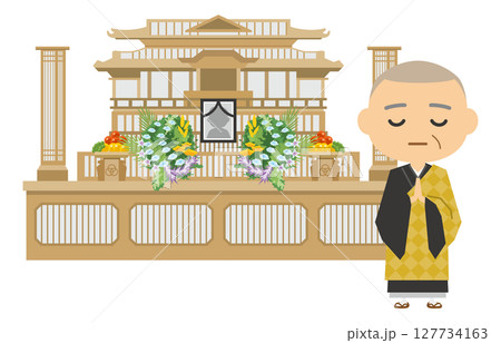 シンプルな祭壇と僧侶のイメージイラスト