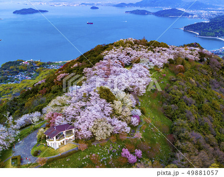 【香川県】 桜満開の紫雲出山と瀬戸内海の島々