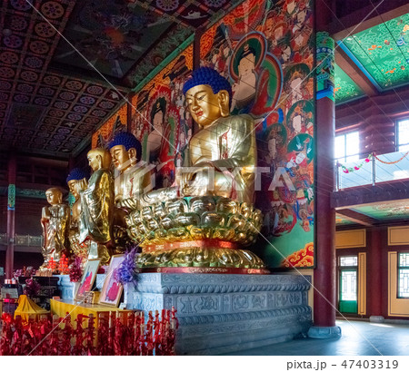 The interior and scenery of the Buddhist Temple