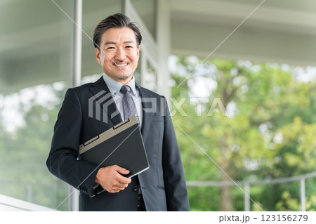 学校の廊下を移動する教員・教師の男性(高校・中学校)