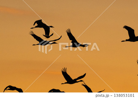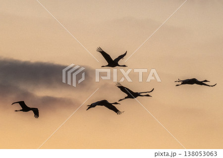 黄金色の朝 鶴の飛翔