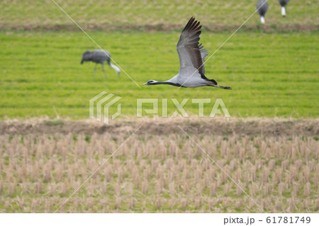 田んぼ上を飛翔するアネハヅル05