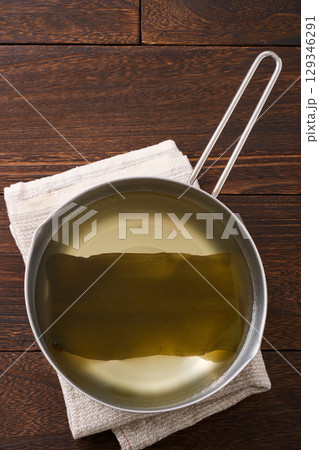 昆布出汁|雪平鍋で昆布を戻している出汁の準備工程