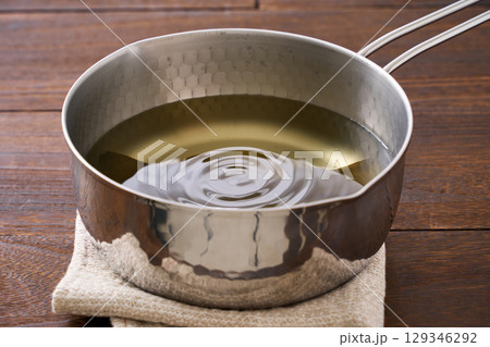 和風出汁、湯気、粉末出汁パックで出汁を取る、調理シーン
