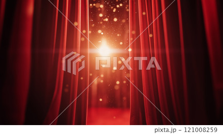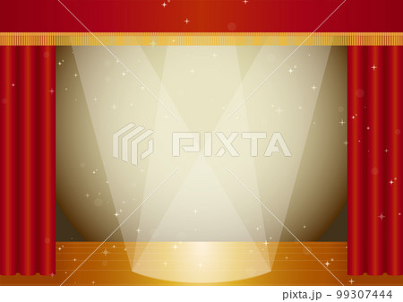 舞台の赤いカーテンが開かれ、観客を迎える準