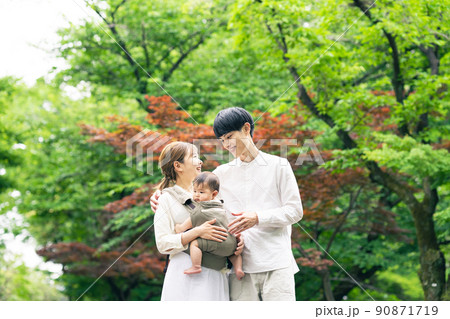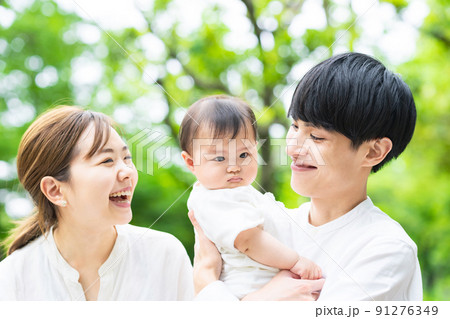 赤ちゃんと若い日本人夫婦・幸せな結婚生活・新婚