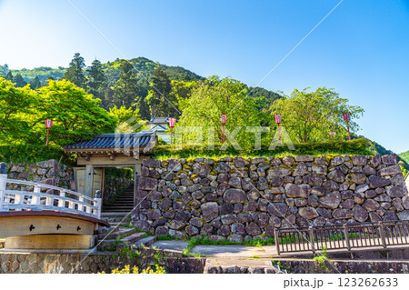 【重要伝統的建築物群保存地区】出石 新緑と有子山稲荷神社の参道と出石城東隅櫓1 兵庫県豊岡市