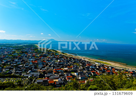 奉納山より望む出雲の日本海と出雲の街並み(島根県出雲市)