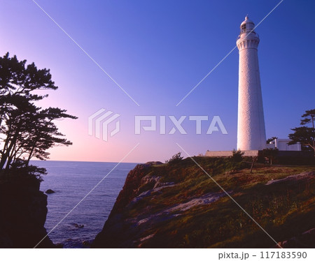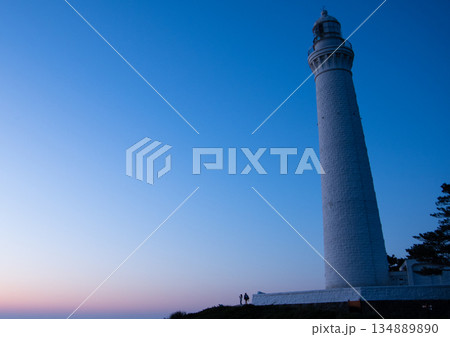 出雲日御崎灯台(いずもひのみさきとうだい)の夕景「日本の灯台50選」「世界の歴史的灯台100選」