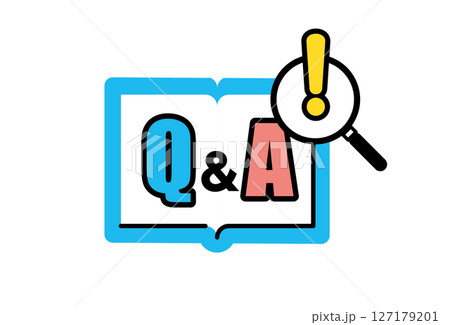 本と虫メガネのQ&Aタイトルイラスト・アイコン
