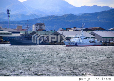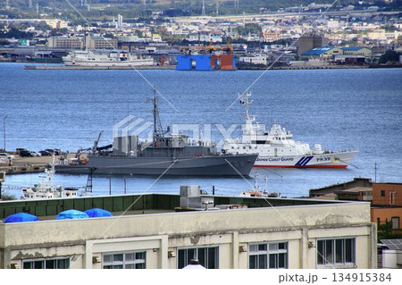 海・航路の安全を護る… 接岸中の『掃海艇あおしま』と『巡視船おくしり』