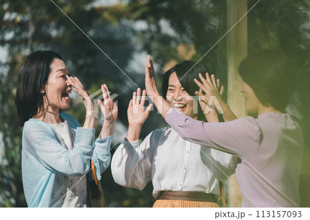 シニア女性とハイタッチ