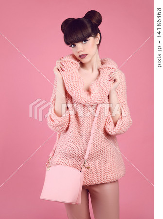 Fashion studio teen look style with casual handbag