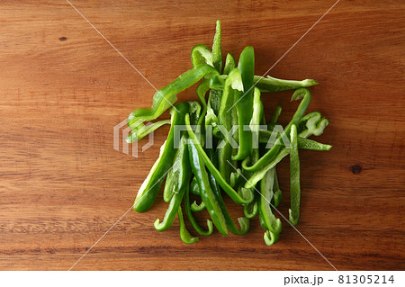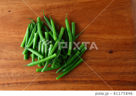 茹でて半分に切ったサヤインゲン 俯瞰撮影