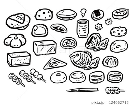 いろいろな和菓子の手描き風線画のイラストセット