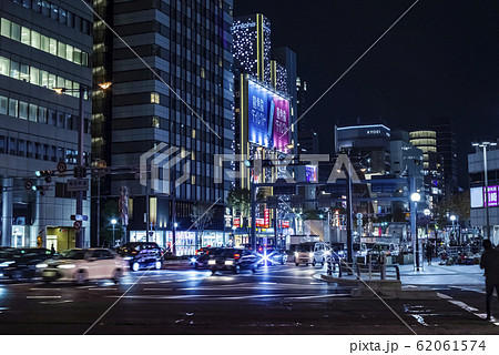 大阪梅田・国道1号線と国道2号線の切り替わる梅田新道交差点の夜景