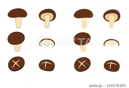 シンプルなしいたけと飾り包丁をいれたしいたけのイラストセット