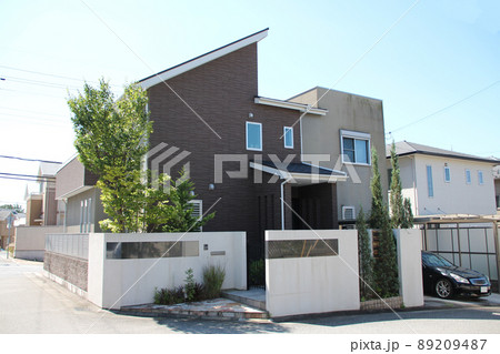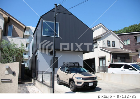 スタイリッシュなメタリックバイカラーの戸建て住宅