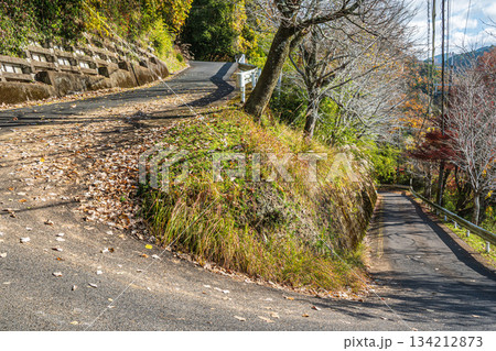 初冬の里山風景 山を彩るモミジの落ち葉 京都府笠置町