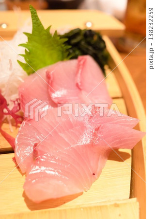 大葉とわかめを添えた白身魚の刺身