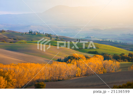 Autumn hills agriculture landscape in harvest time