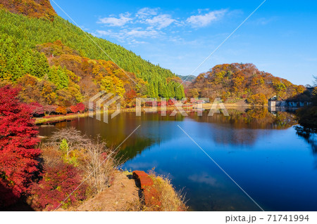 紅葉の碓氷湖と刎石山