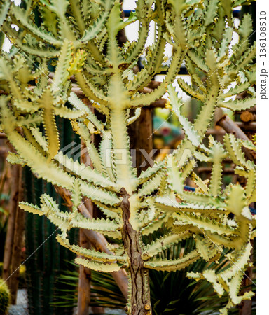 Three yucca plants in a modern garden style in green and white colors, representing desert landscaping and drought-tolerant gardening