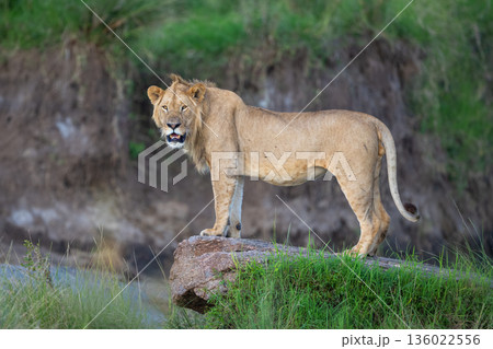 Rocky terrain showcases a blend of rugged stones and lush green vegetation along a hillside during daylight