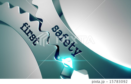Safety first icon with caution sign and helmet. Construction vector for industrial protection, warning, and workplace security.